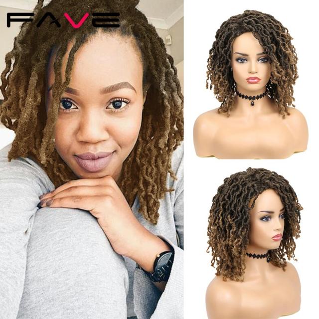FAVE Dreadlock Wig Braided Twist Black Brown Short Curly Heat Resistant Fiber Synthetic Daily Party Replacement for Women
