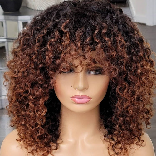 Ombre Honey Blonde Full Machine Wigs With Bangs 1B27 180Denity Jerry Curly Human Hair Wigs For Black Women