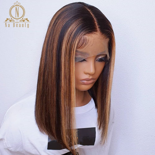 Elia Highlight Brown Ombre Colored Lace Frontal Wig Human Hair Wig 180 Density Remy Peruvian 100% Human Hair For Black Women