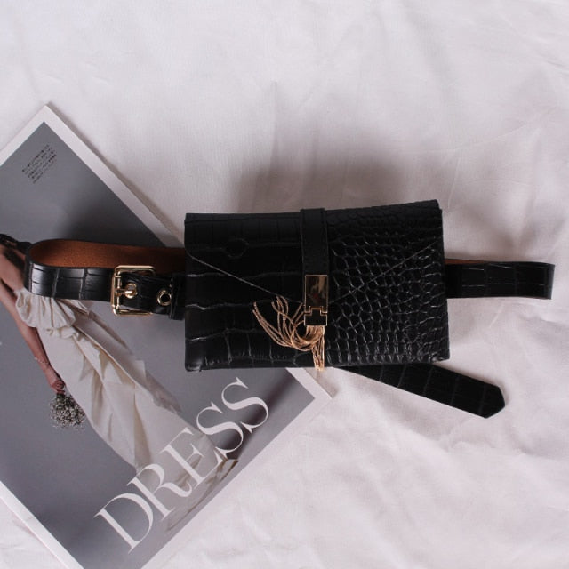 New Ladies Fashion Black White Fanny Packs Tassel Waist Pack Phone Pocket Leather Belt Bag For Women PU Wild Waist Bags G141