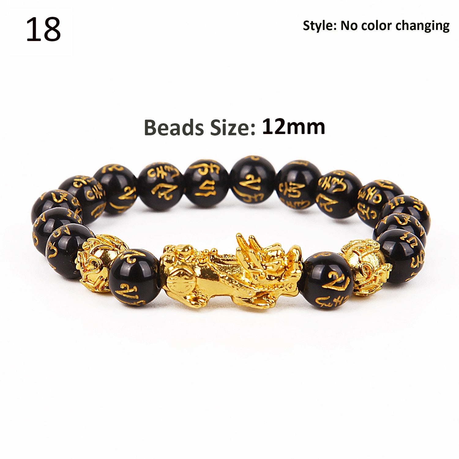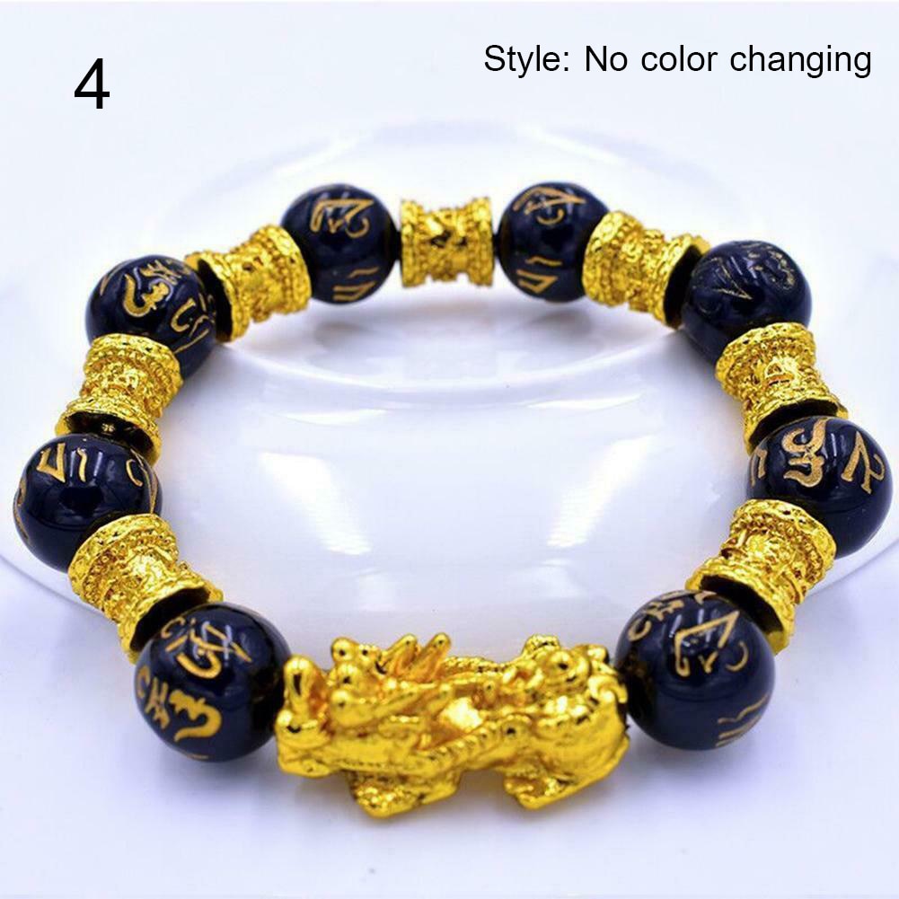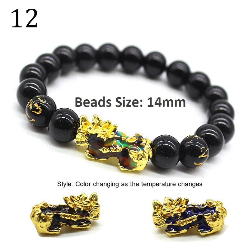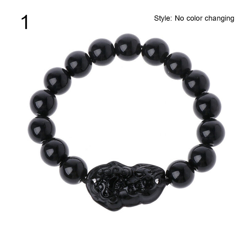 Unisex Obsidian Stone Beads Bracelets Chinese FengShui Pixiu Color Changing Wristband Wealth Good Luck Bracelet Men Women Chain