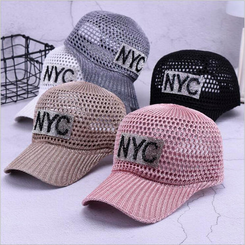 Women's Breathable Baseball cap Summer Hat for Female 2018 Fashion Letter Diamond Hats Visor Women Breathable Mesh Cap