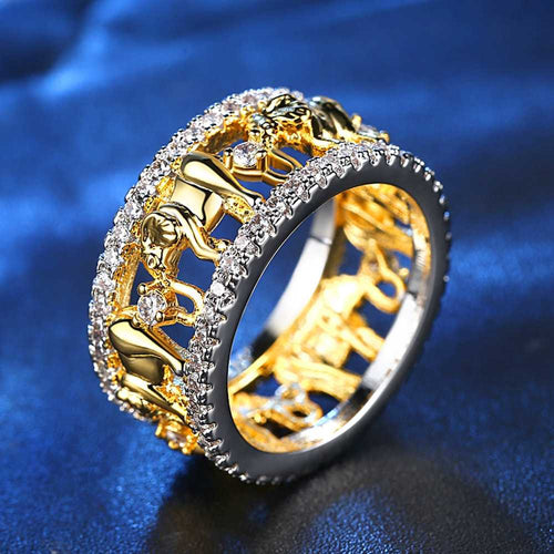 NPKDS Golden Zircon Ring Elephant Ring Women Personality Fashion Accessories Colored Zircon Fashion Gift Creative Jewelry