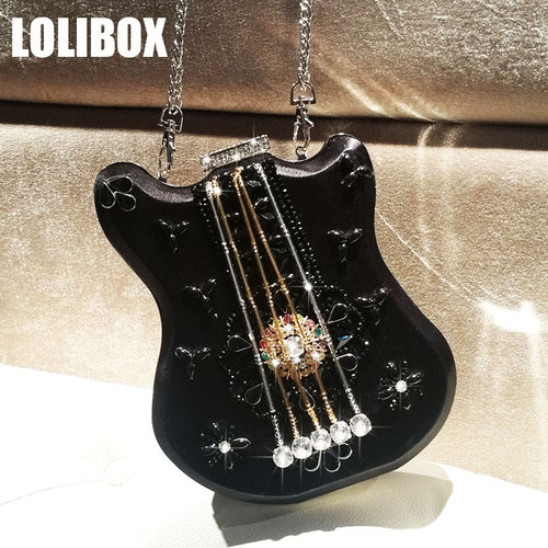 LOLIBOX Women Clutch Evening Party Hand-beaded Diamond Violin Design Chain Messenger Bags Women Dinner Bag