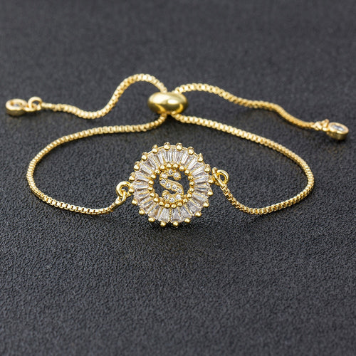 Hot Sale A-Z Initial Copper Pave Setting Cubic Zircon Letter Charm Bracelets Adjustable Chain For Women Lovers Best Jewelry Gift